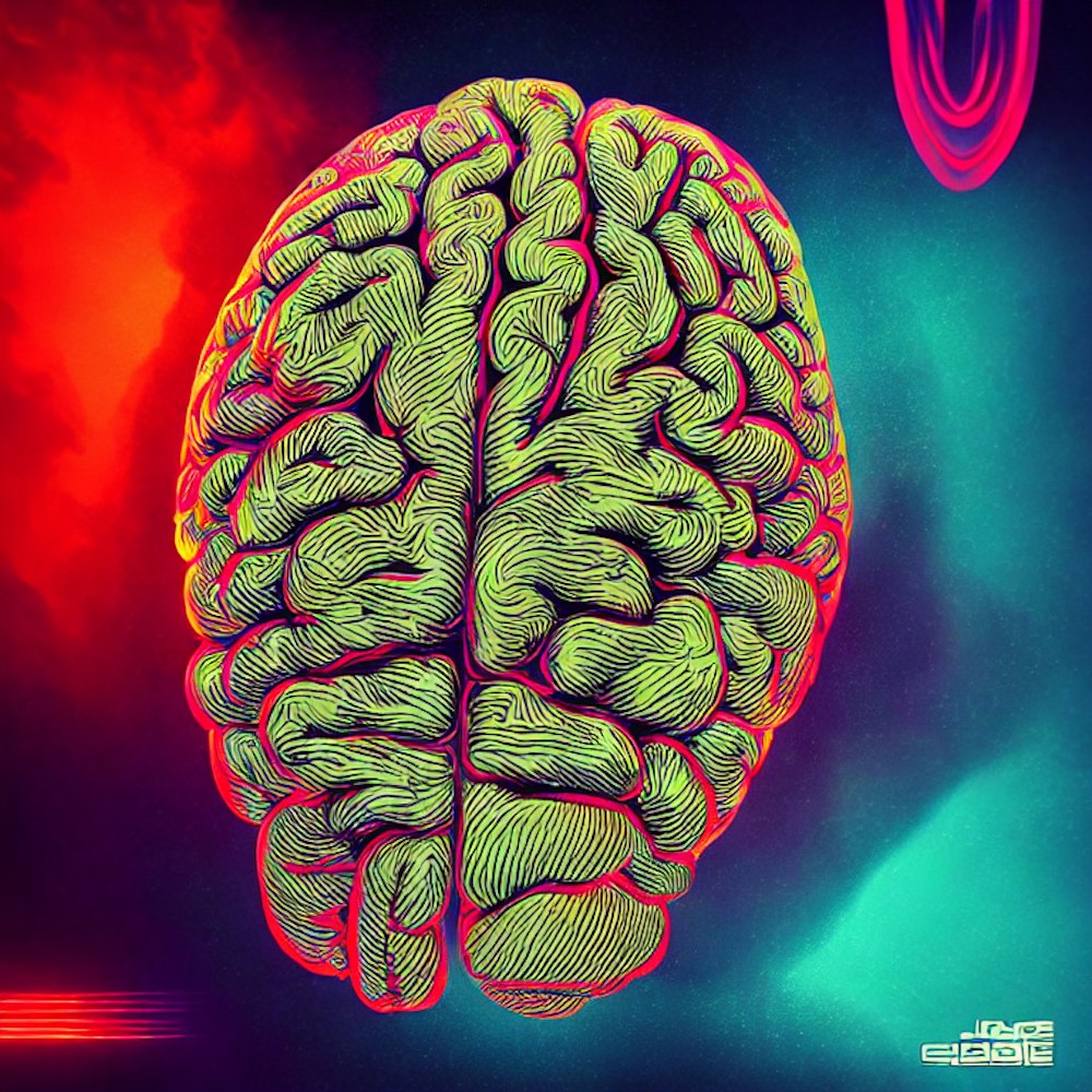 cover art, brain, wavy, 80's colored