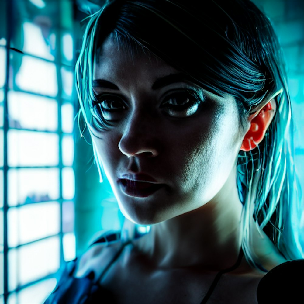 The back rooms, cyberpunk, serious eyes, 50mm portrait