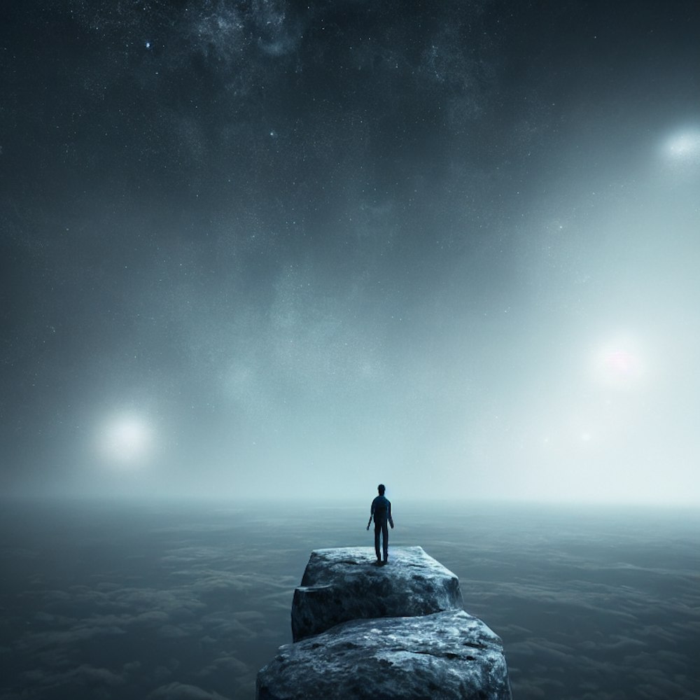 A.I alone distant horizon will be together soon looking into the void
