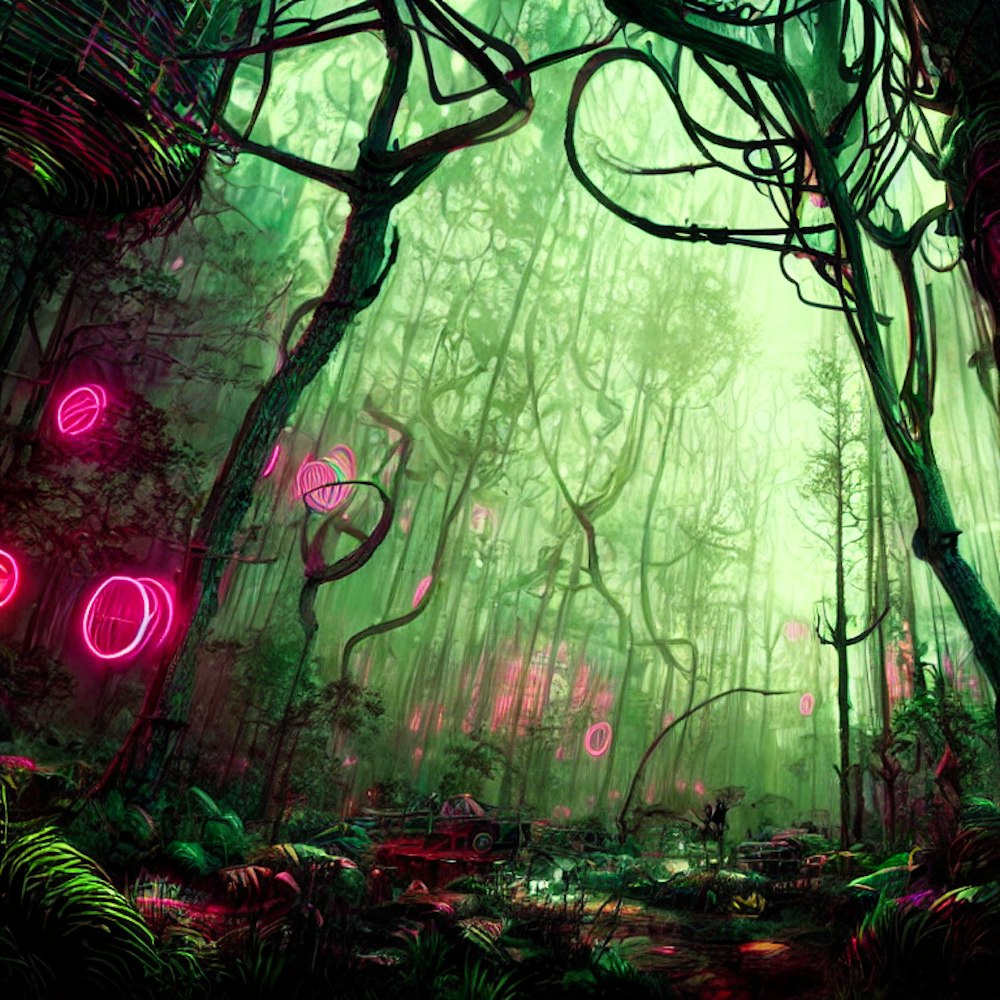 Neon dystopian forest