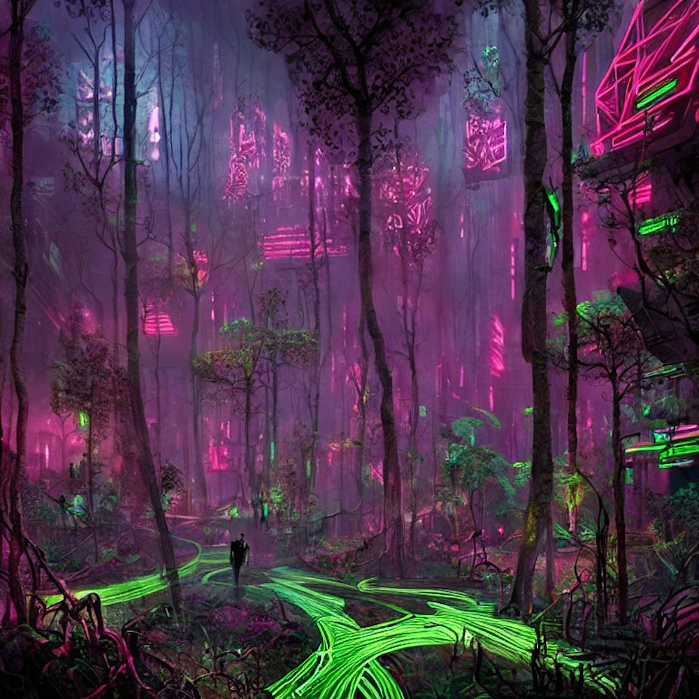 Neon dystopian forest