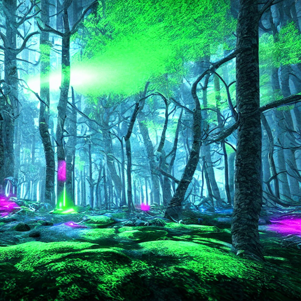 Neon rave lasers dystopian forest field ultra realism 4k
