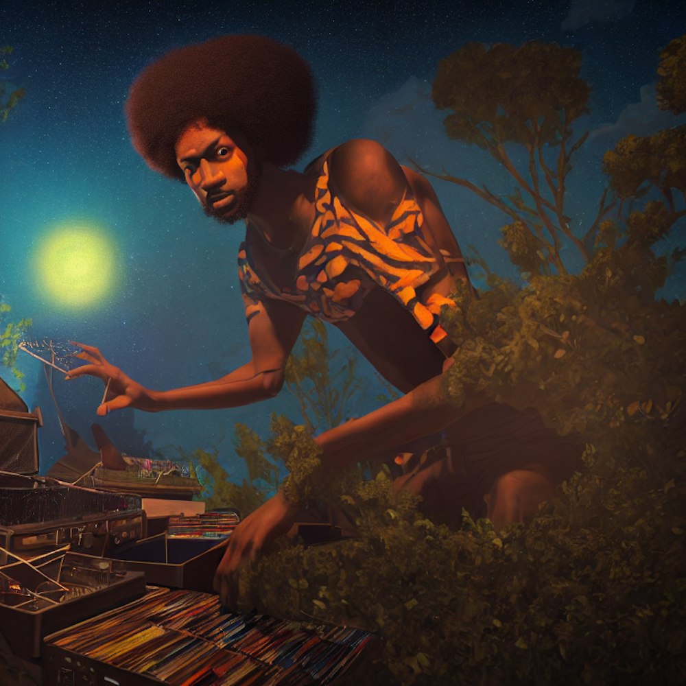 Black man with afro Crate digging for recordsĀ