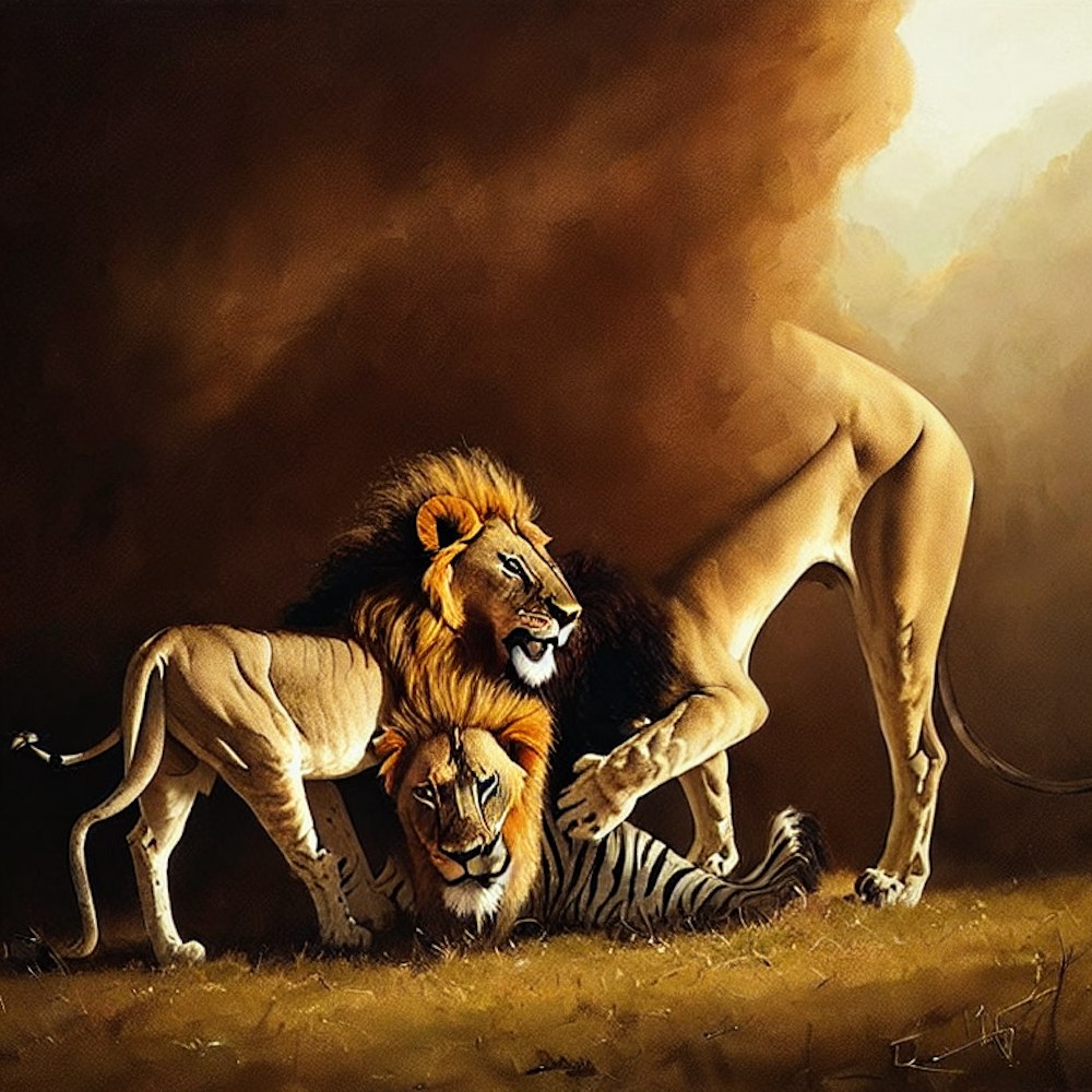 A lion eating a zebra