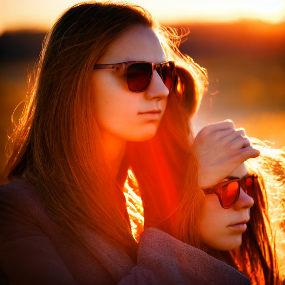 warm color, girl, sunset, 70's, sunglass, profile, wind, sad, sunflare, young woman,