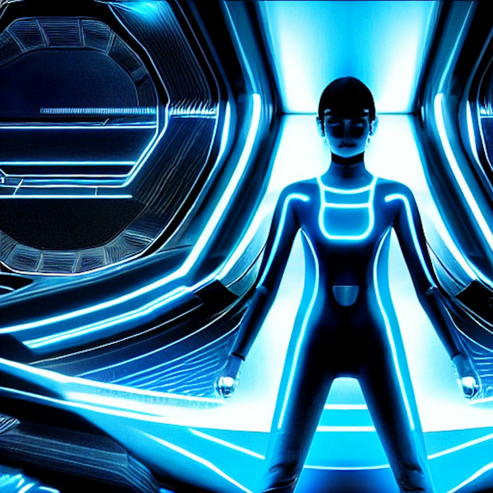 Tron, cinematic lighting, hyper detailed, intricate design, intriguing, masterpiece,, soft lighting, finely detailed, photorealistic, futuristic