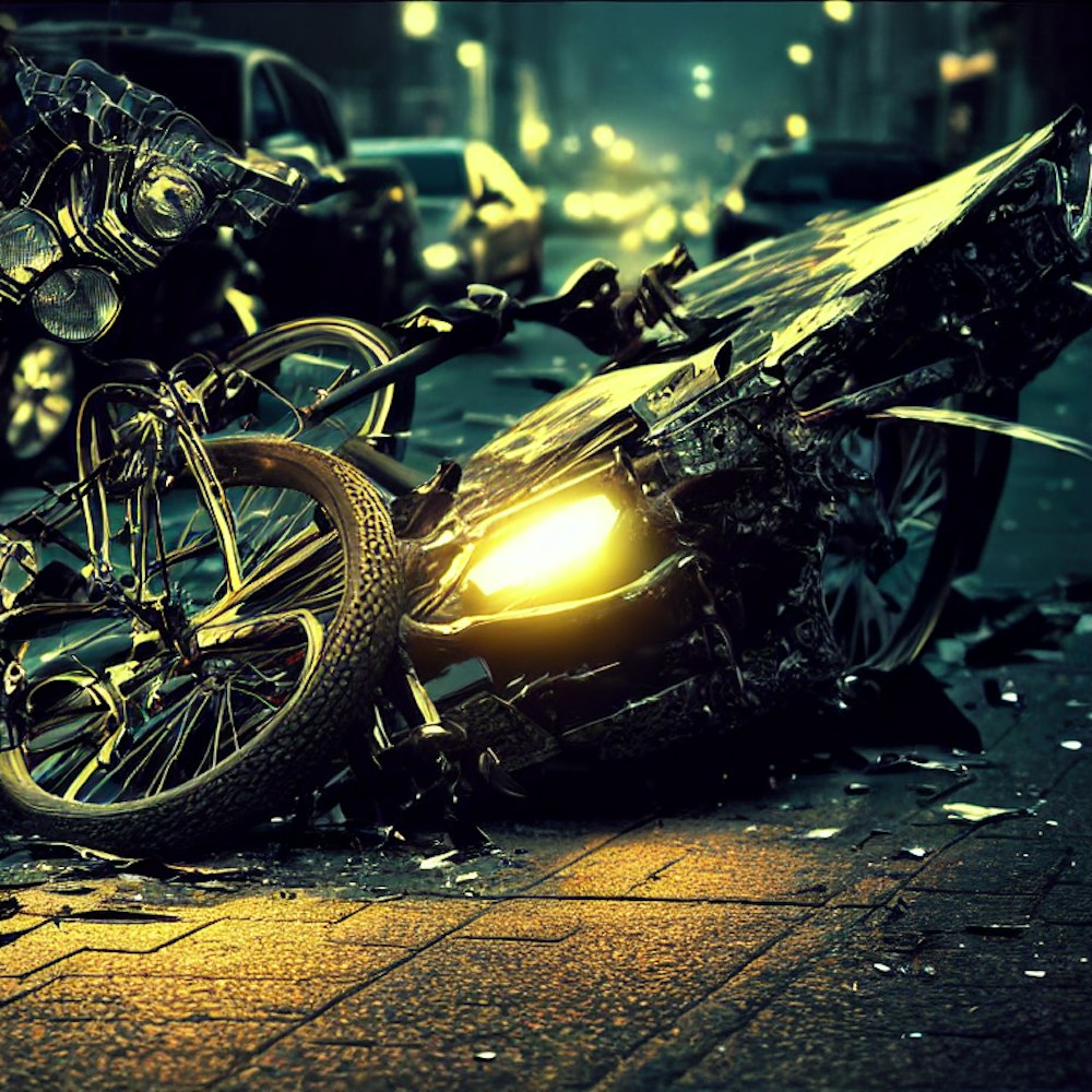 car crashes into bike cinematic lighting, hyper detail, masterpiece, intricate design