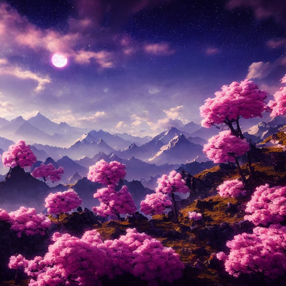 Sakura flowers, mountains, beautiful sky