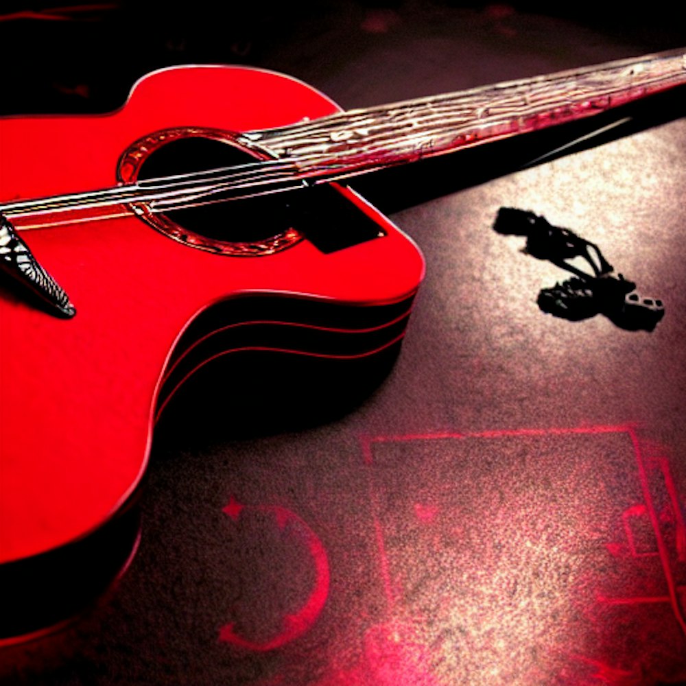Red devil with a guitar
