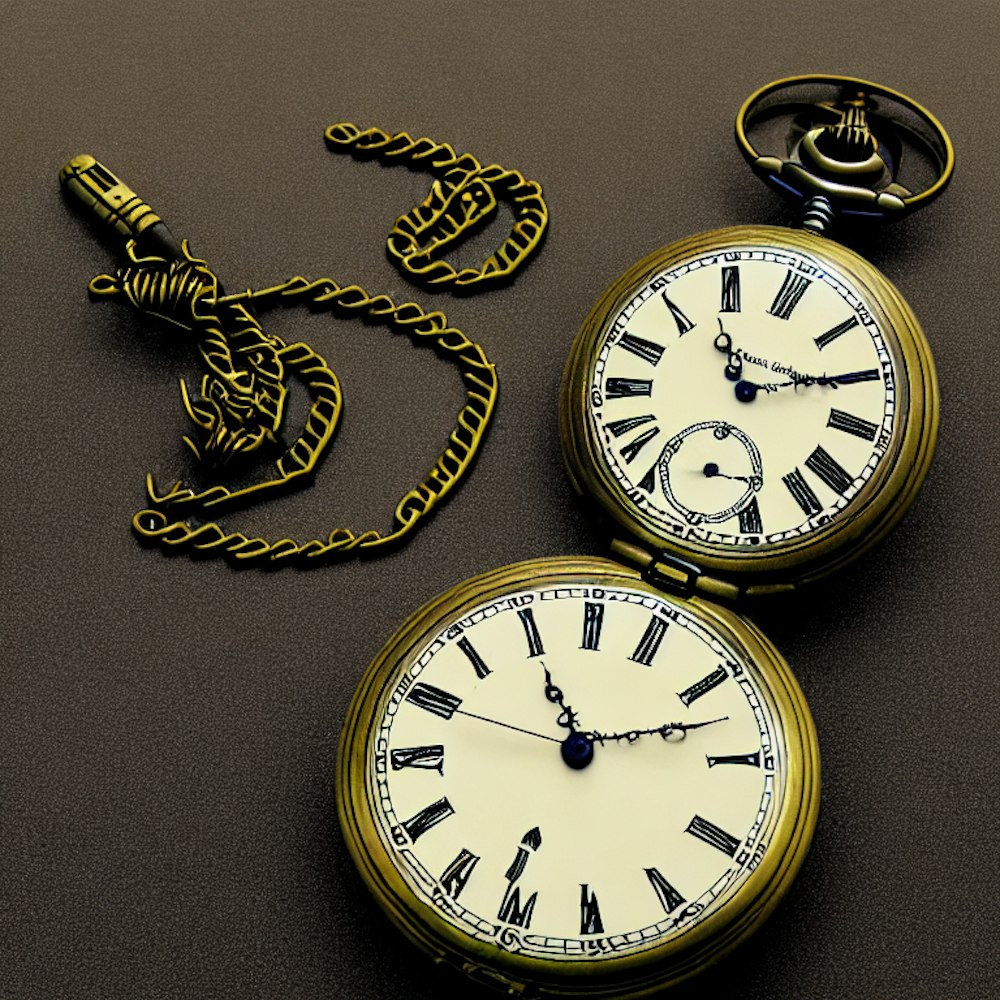 one pocket watch with a yellow dial the pointer forming music note, gloomy scene with fog, very detailed