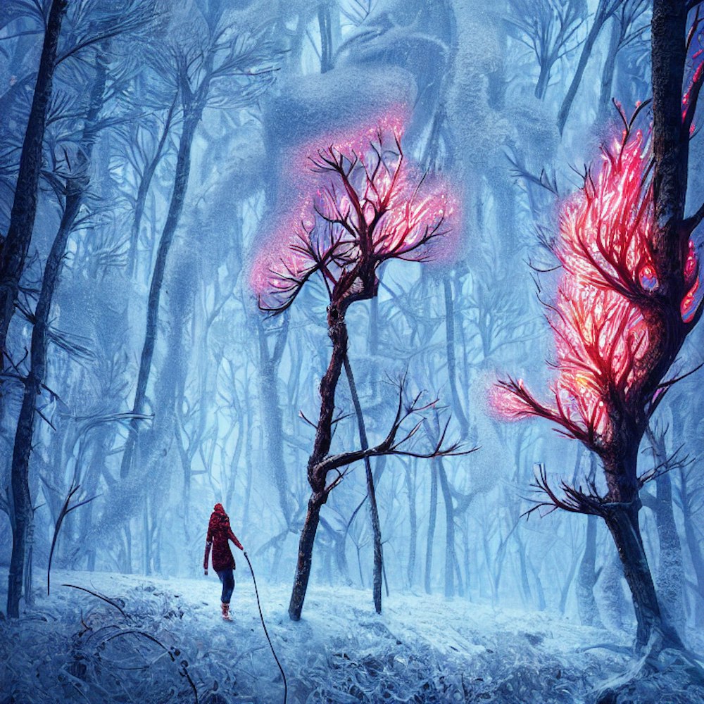 winter forest, snowfall, a tree under snow