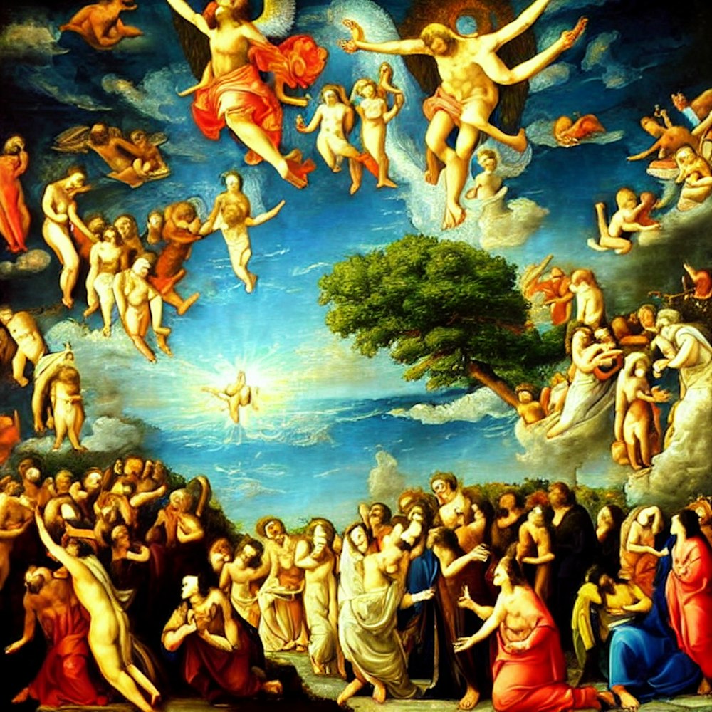 Religious painting, heaven, paradise, god
