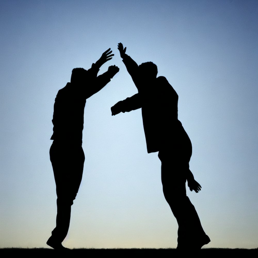 two men silhouettes dancing