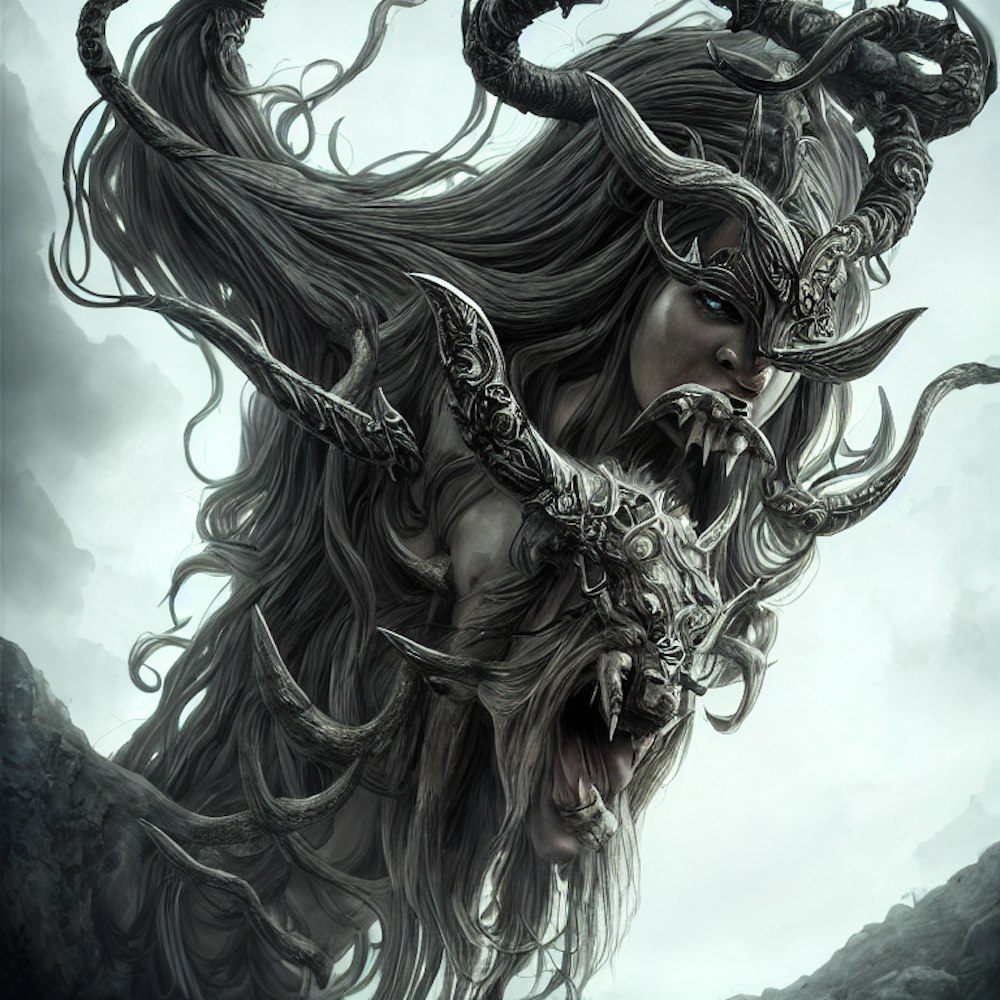 Hel, norse mythology, hyper realistic, hyper realism, hyper detail
