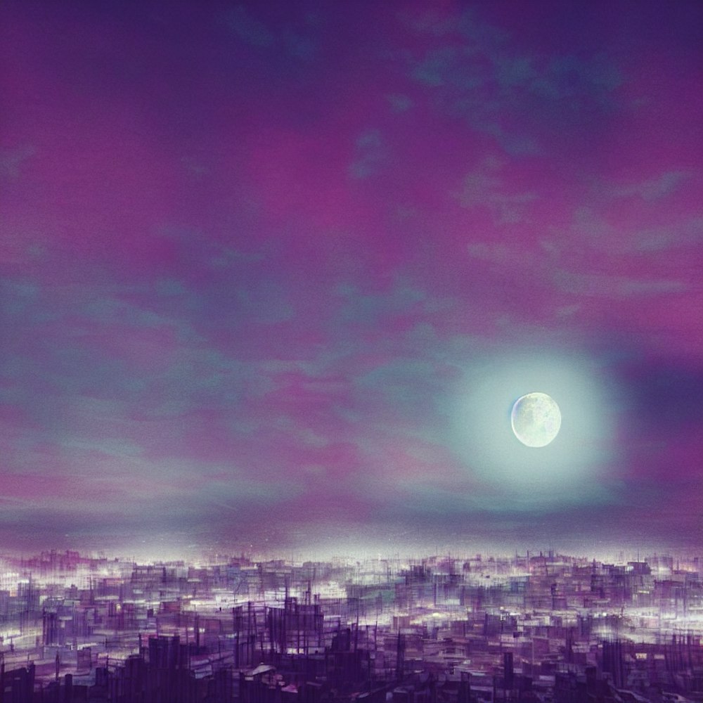 blurry night moon in neon sky
