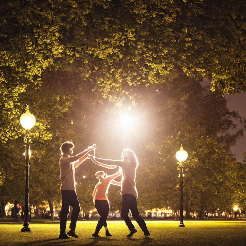 a couple dancing at a park