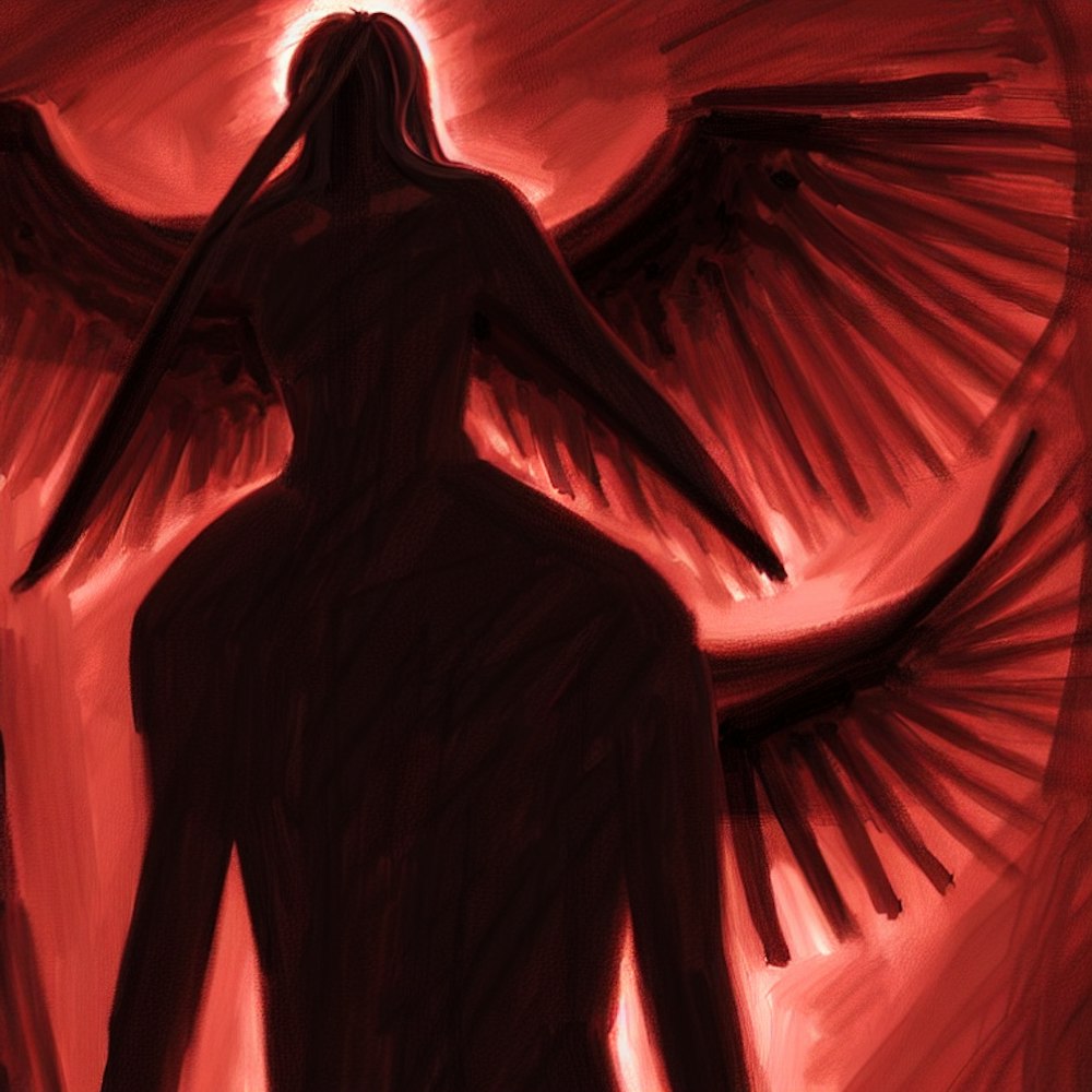 a painting of an angel with a halo, scp-914, demon noble character design, with blackness instead of eyes, red and brown color scheme, color study, post - apokalyptic, ( ( ( horror art ) ) )
