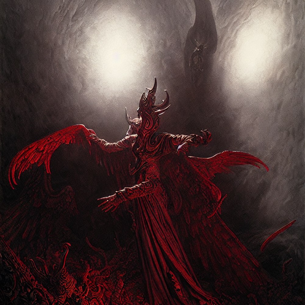lucifer, red in white in black