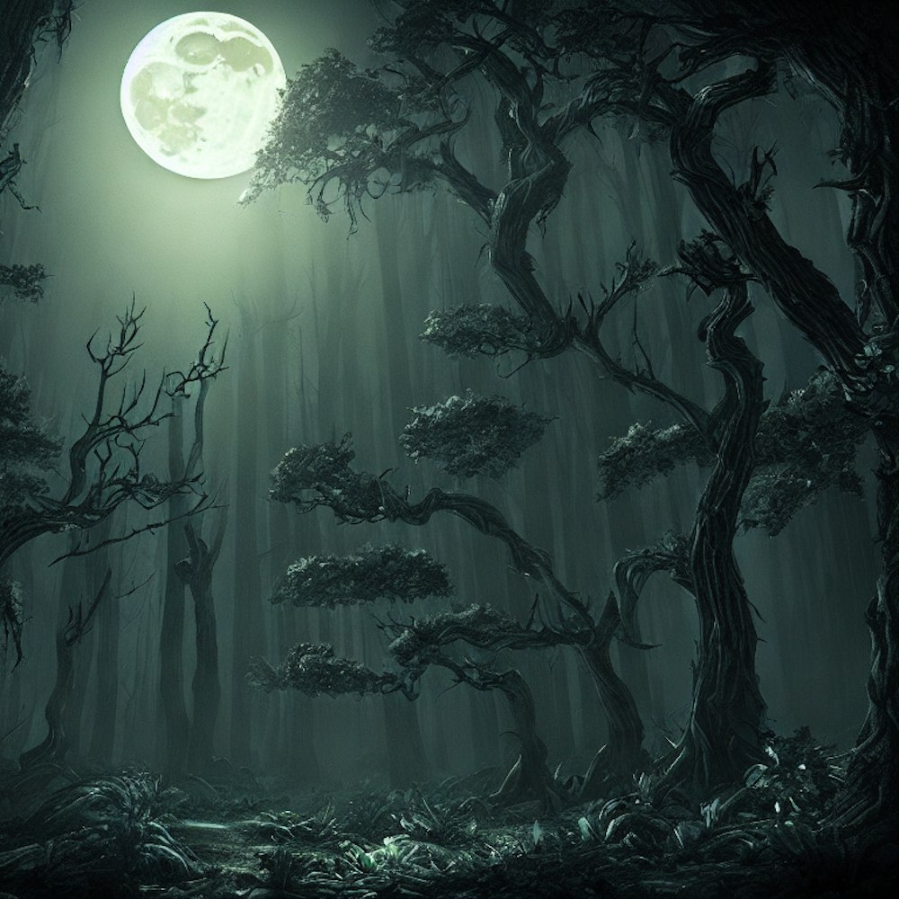 moonlit night, demonic , scary forest