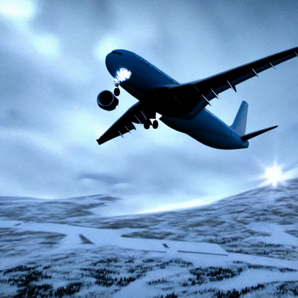 airplane is flying in the snow
