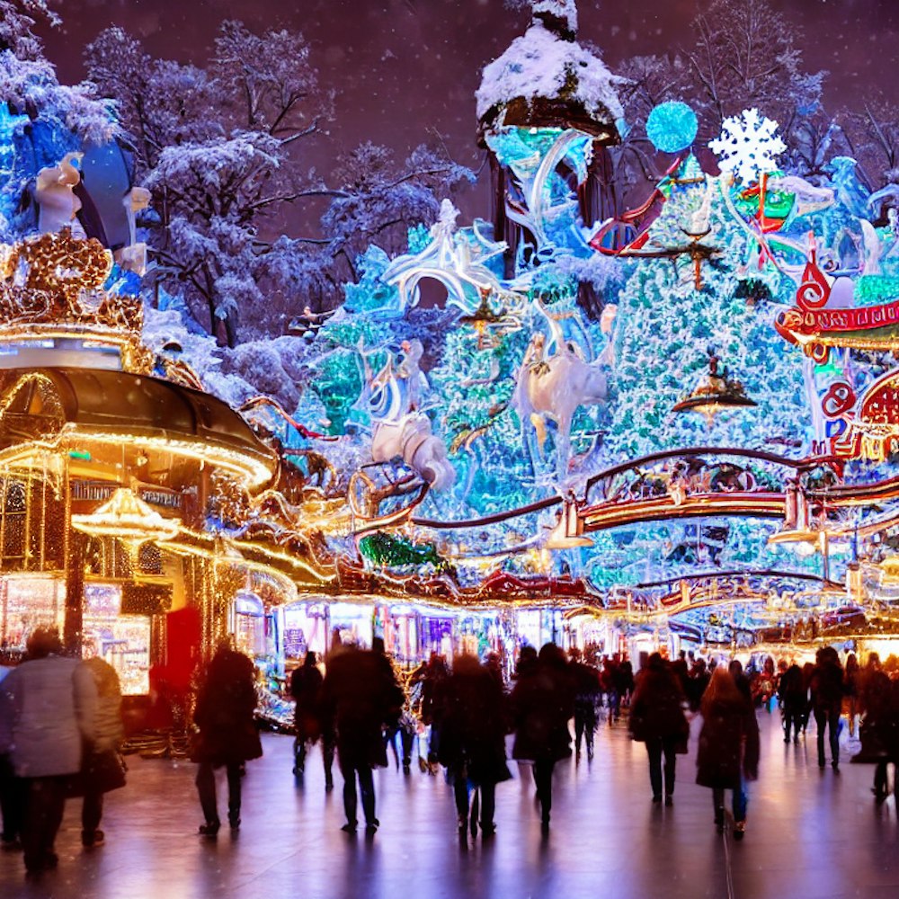 DO AN AMAZING PICTURE OF WINTER WONDERLAND IN A CALL CENTER WITH THE WORDS HGS STAFF