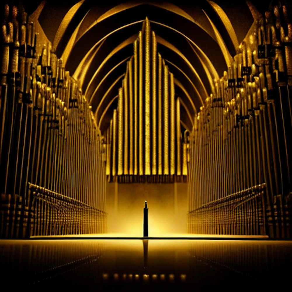 Dystopian choir cathedral piano ensemble dark gold shade orchestra minimalist hero�, finely detailed, concept art, cinematic lighting