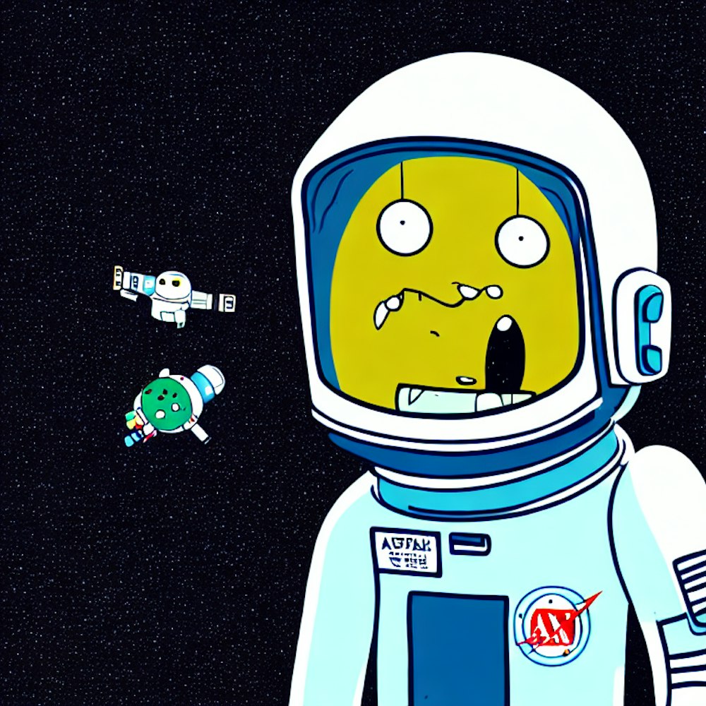 Tooth shaped character in an astronaut suit drawn in the style of BMO from Adventure Time