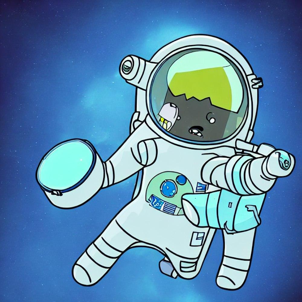 Tooth shaped character in an astronaut suit drawn in the style of BMO from Adventure Time
