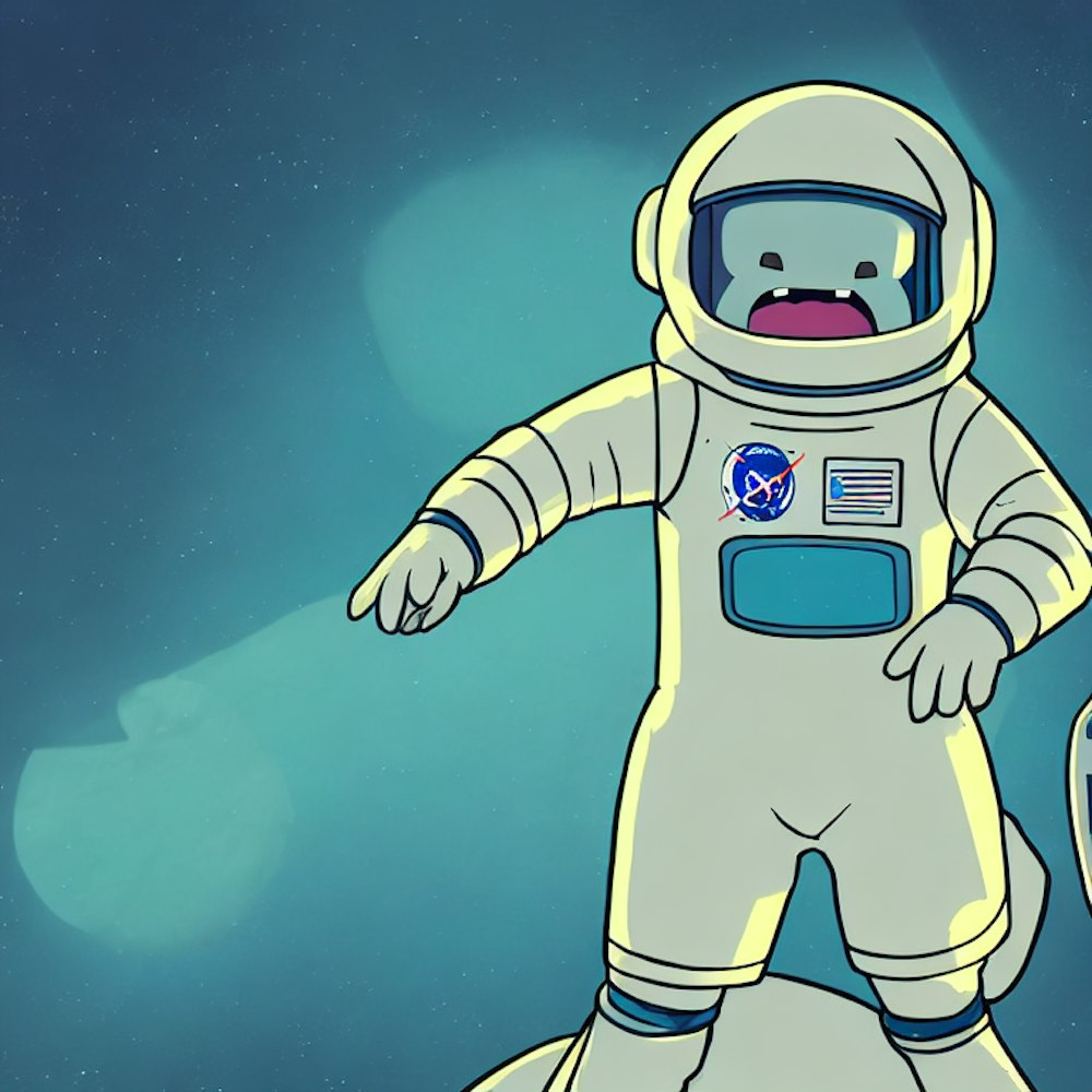 Tooth shaped character in an astronaut suit drawn in the style of BMO from Adventure Time