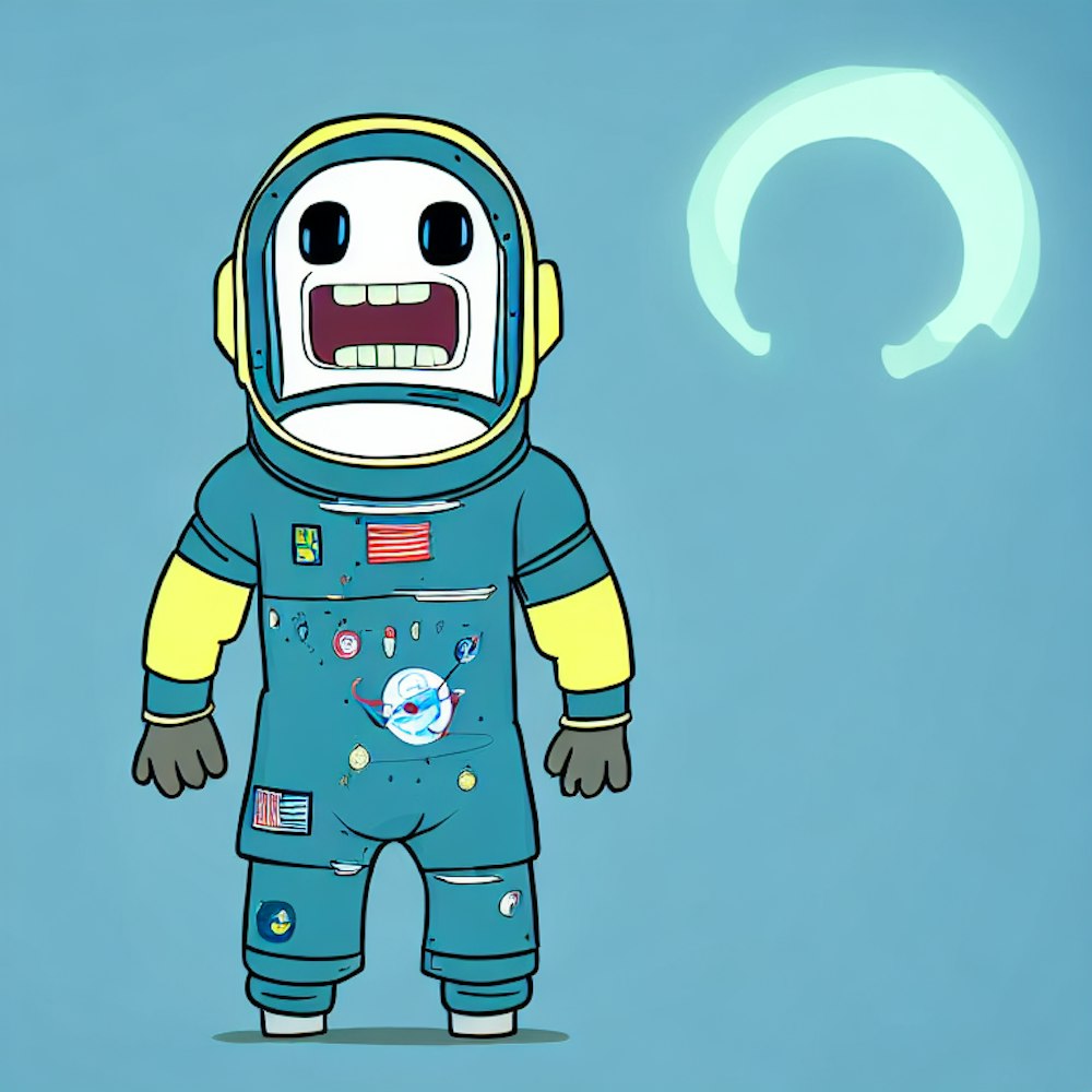 Tooth shaped character in an astronaut suit drawn in the style of BMO from Adventure Time
