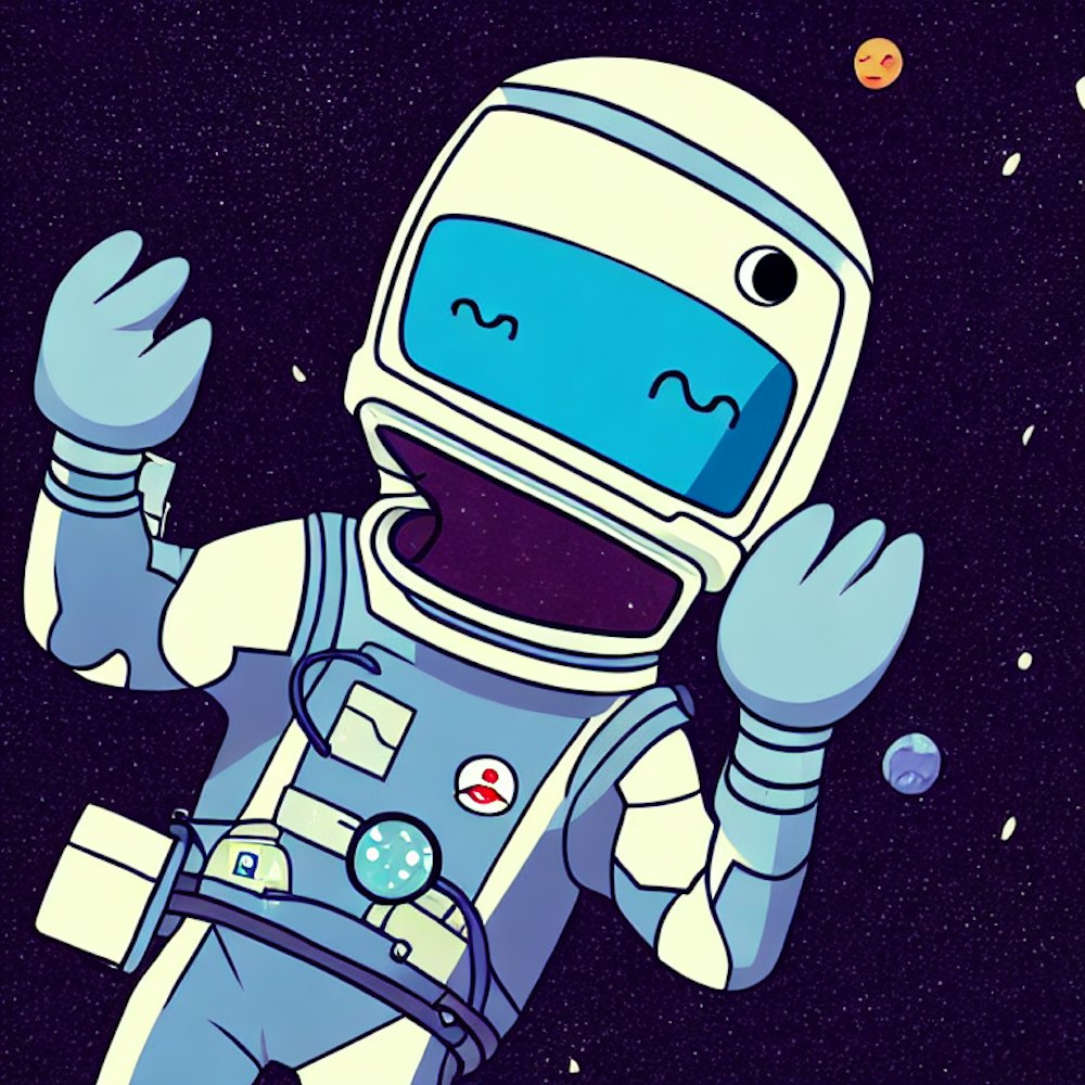 Tooth shaped character in an astronaut suit drawn in the style of BMO from Adventure Time