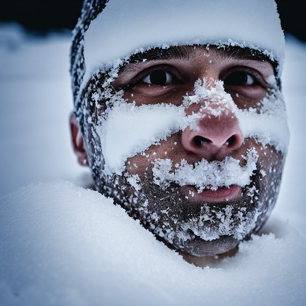 CLOSE UP OF PERSON'S FACE BURIED IN SNOW