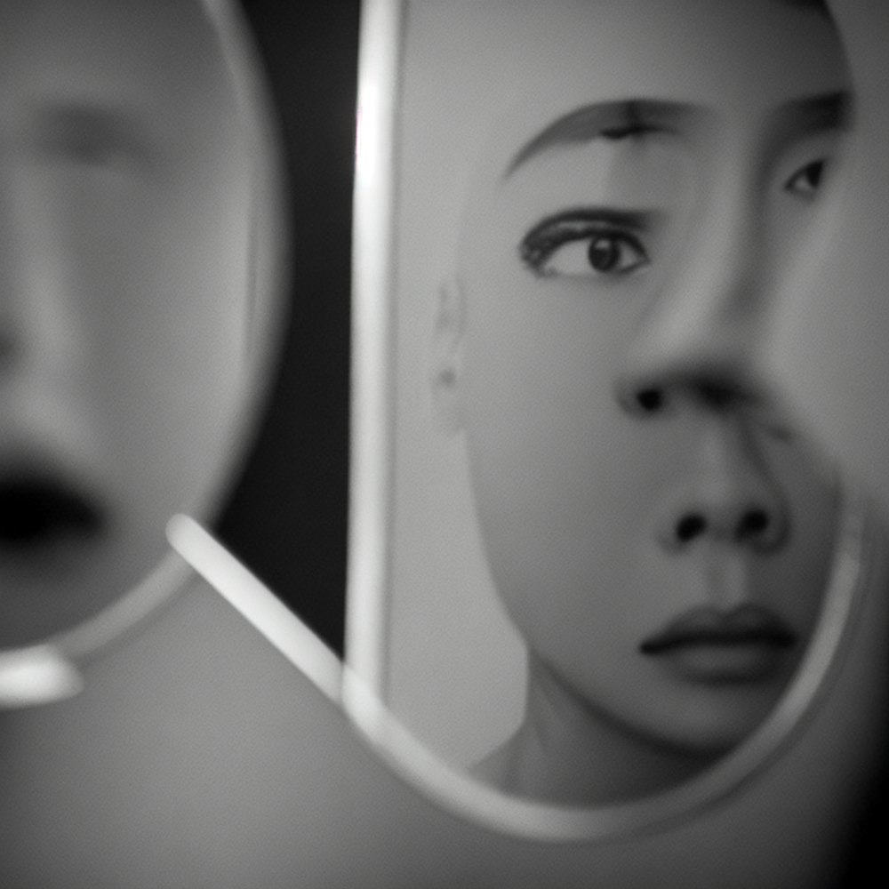 someone looking in the mirror but the reflection has no facial features realistic amazing details
