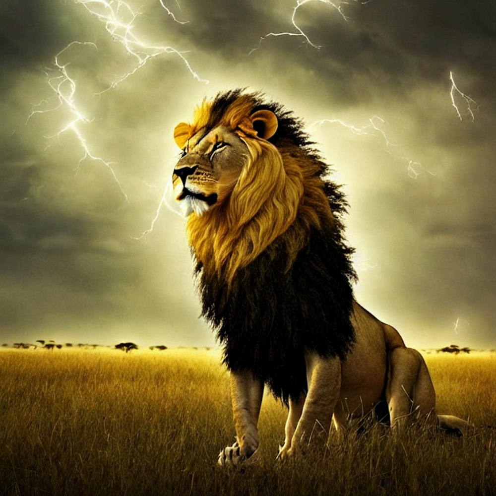 lion in a field staring at a storm #realistcartoon #africa�