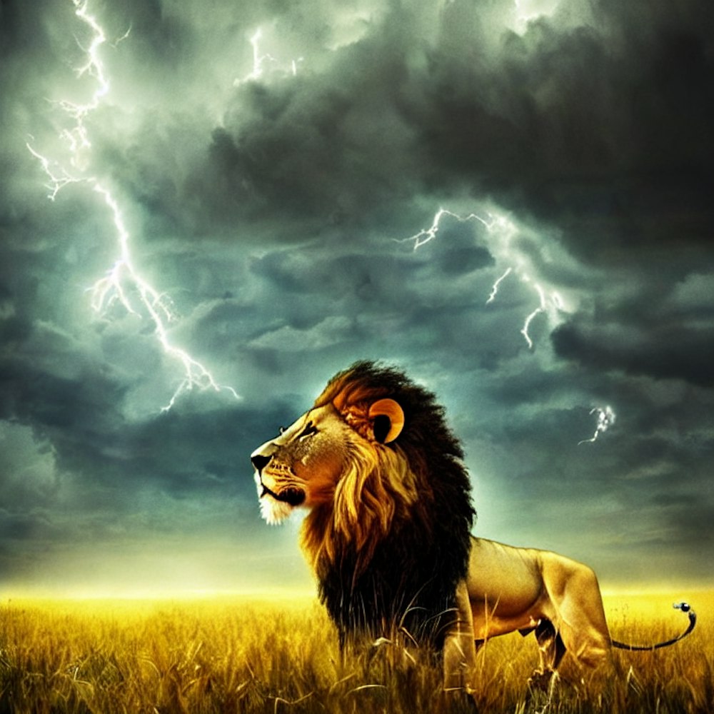 lion in a field staring at a storm #realistcartoon #africa�