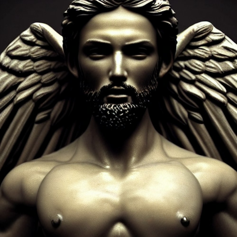 A biblically accurate angel with a 6 pack, masterpiece, detailed, hyper detailed, cinematic lighting, fantasy, finely detailed, serious eyes, intricate design, intriguing, fog