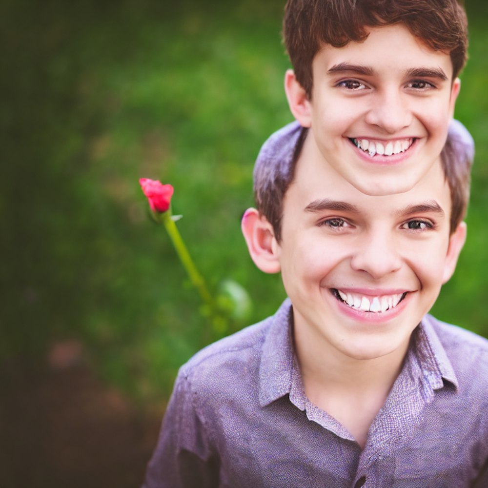 Mishapen smiling boy needing attention flowers