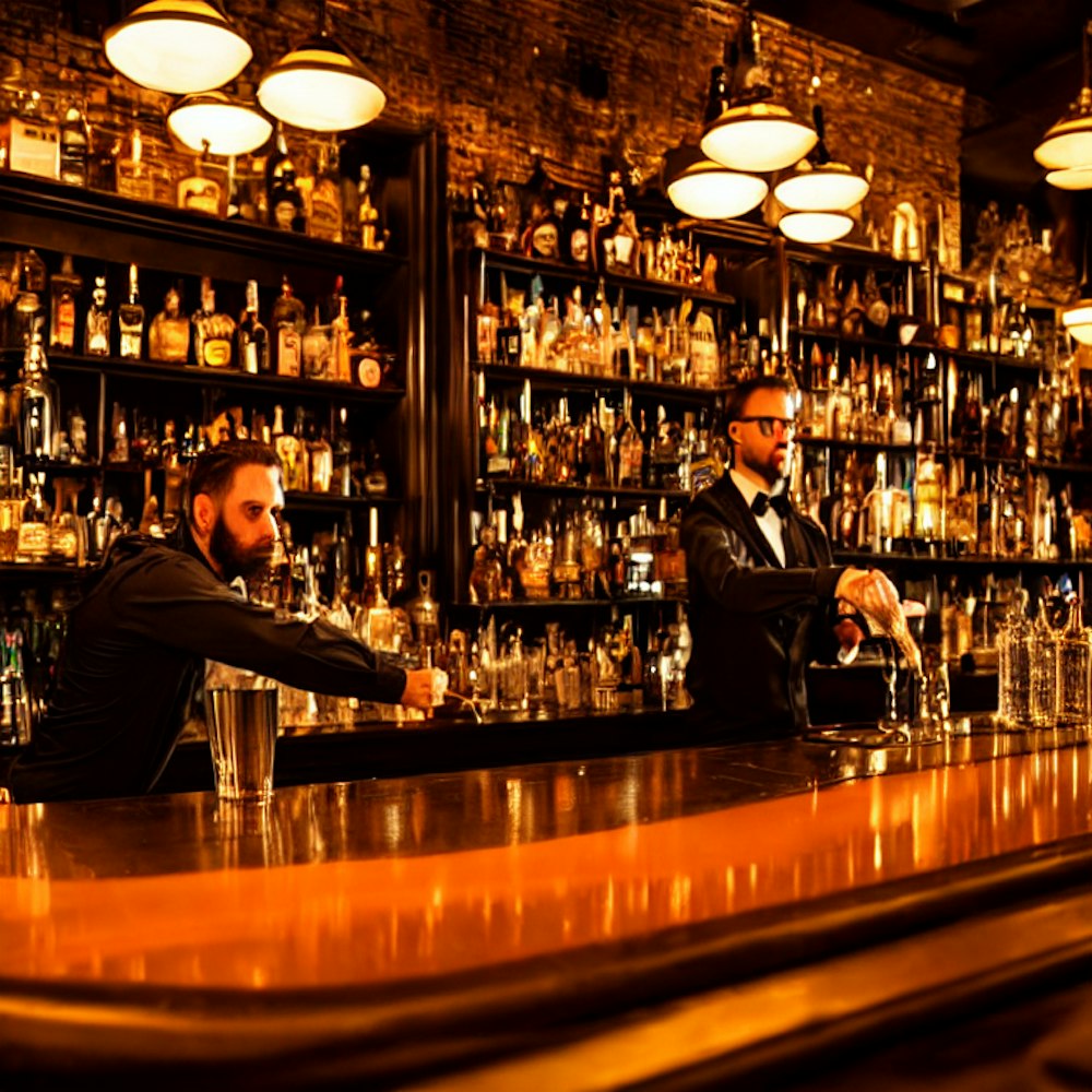 Bartender at closing time wiping the bar
