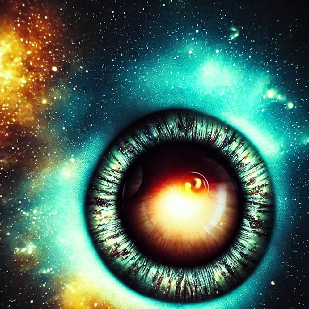 eyeball in the center outer space but only showing the stars in the background.