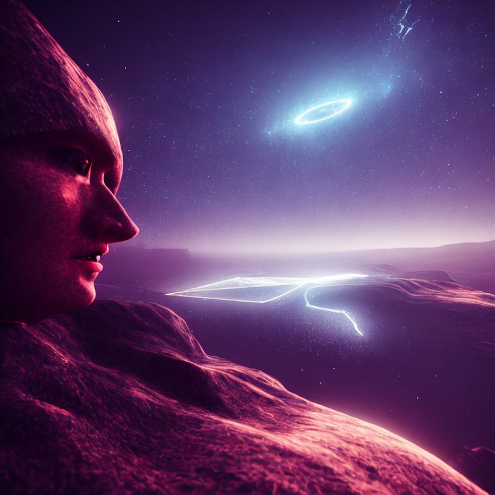 A.I alone distant horizon will be together soon looking into the void bue