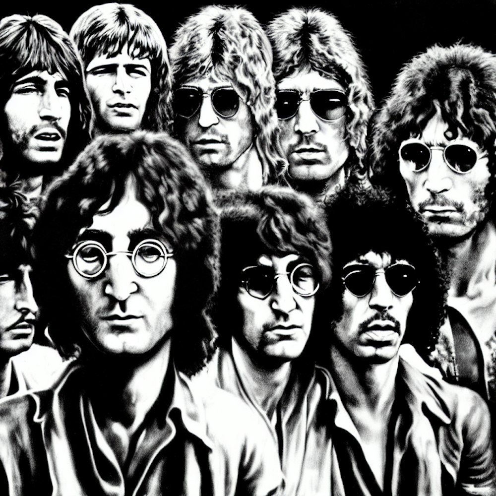 realistic detail picture with john lennon , jim morrison, jimi hendrix , kurt cobain , layne staley