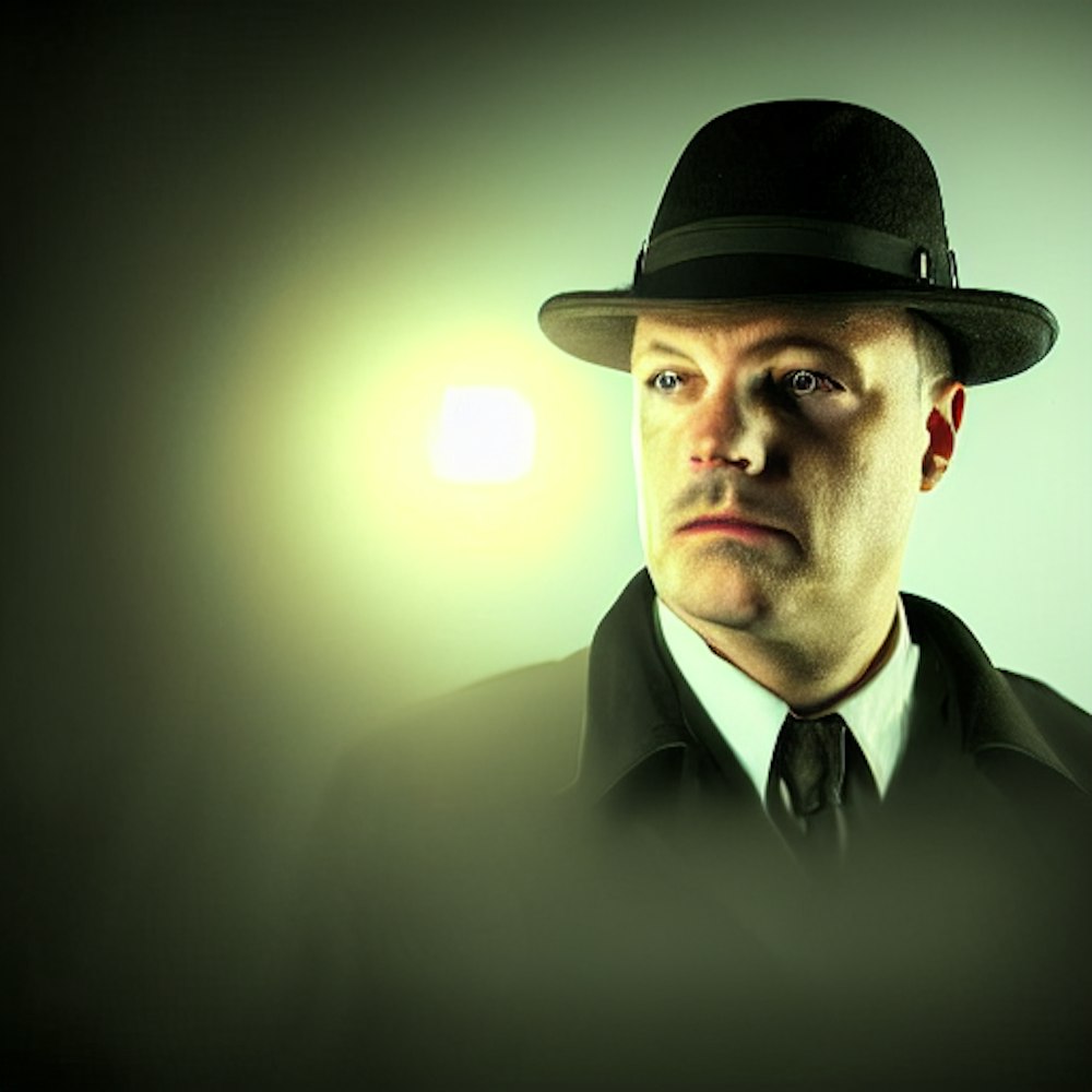 old photograph of a private investigator, cinematic lighting, photography, highly detailed