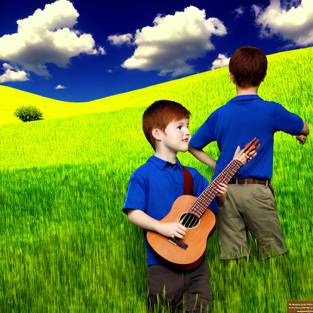 boy in windows xp wallpaper with a uke