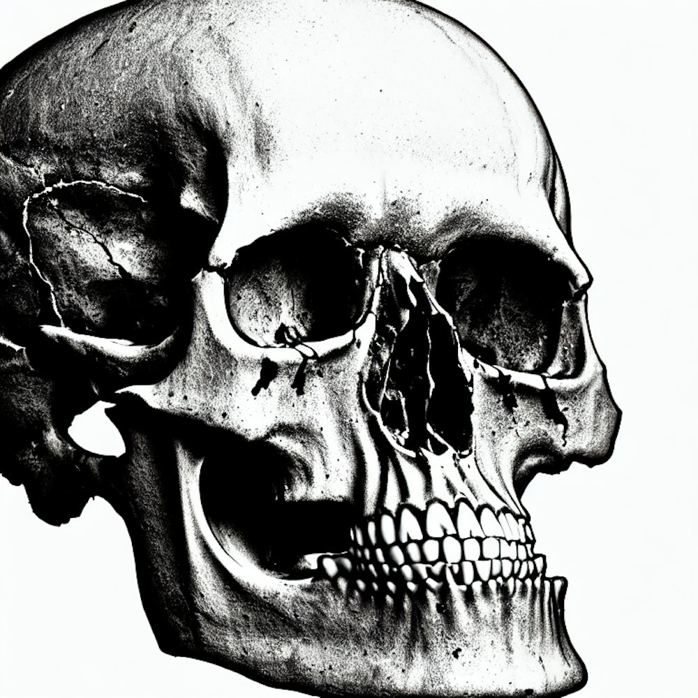 black and white sketch of a human skull