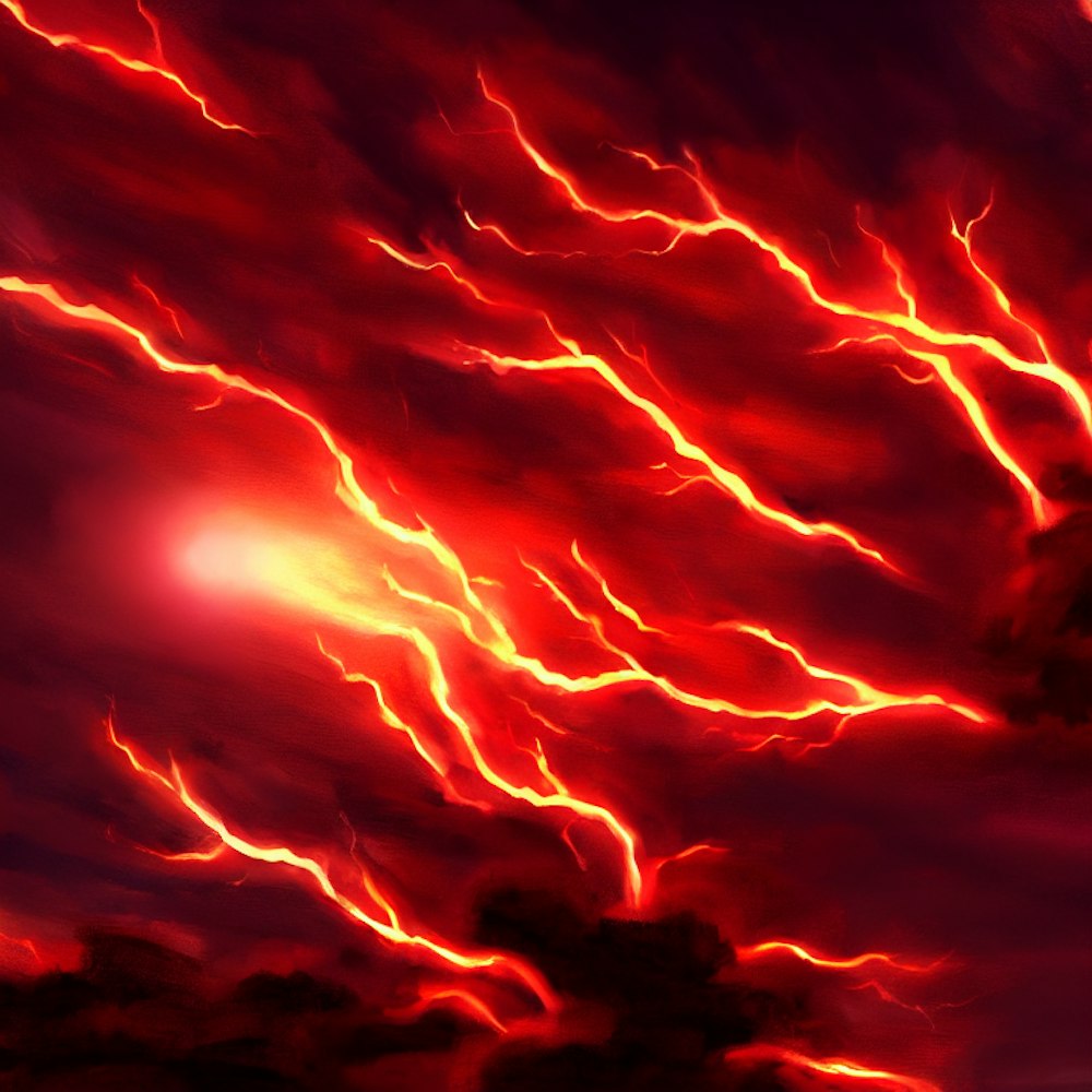 sunset with red lightening bolts