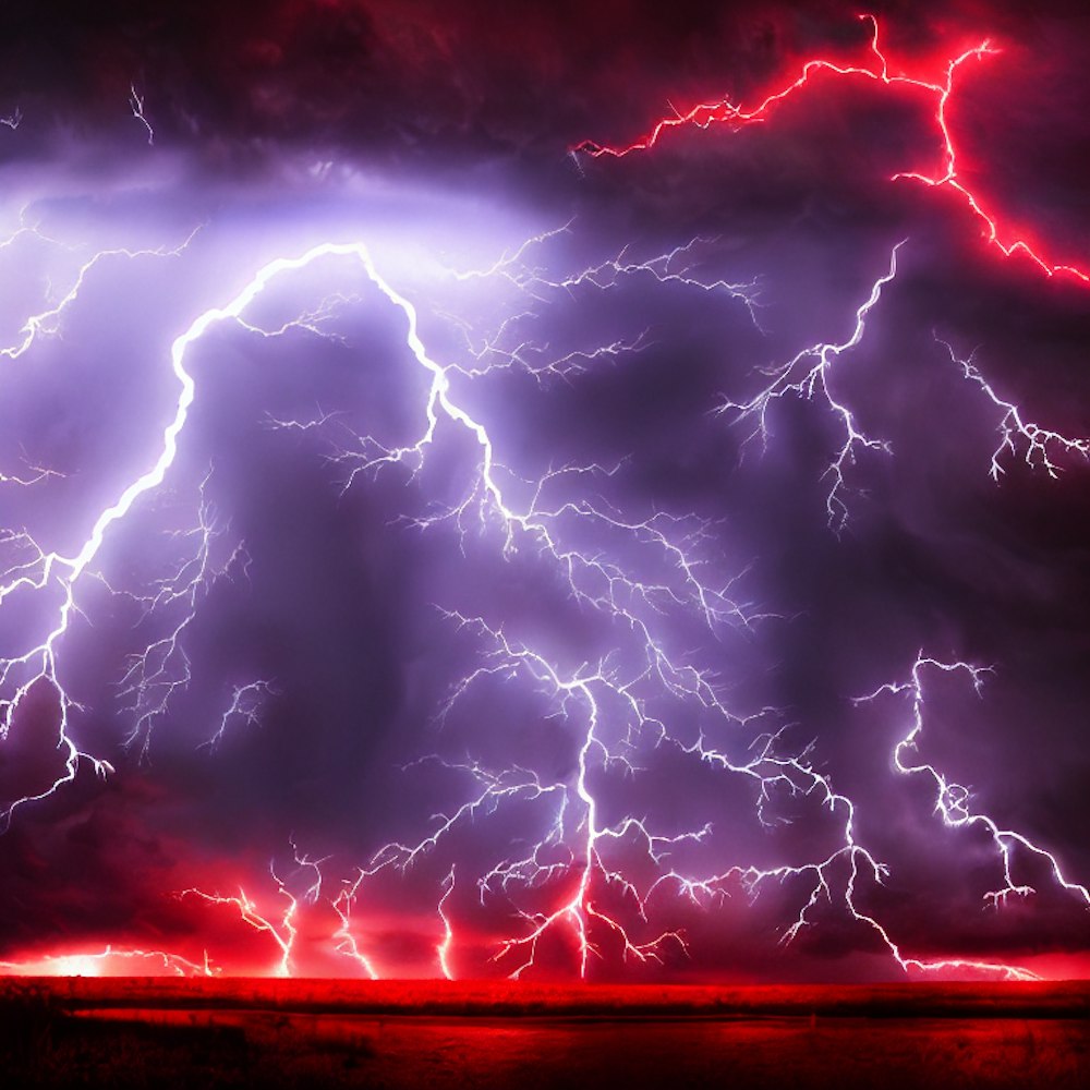 thunderstorm with red lightening bolts
