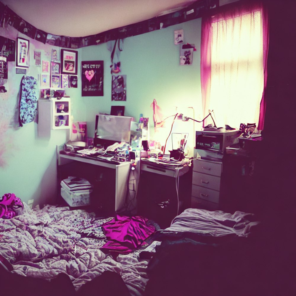 typical 80s grunge aesthetic messy teen bedroom no people