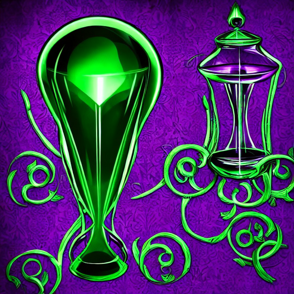 green and purple shadowy hourglass