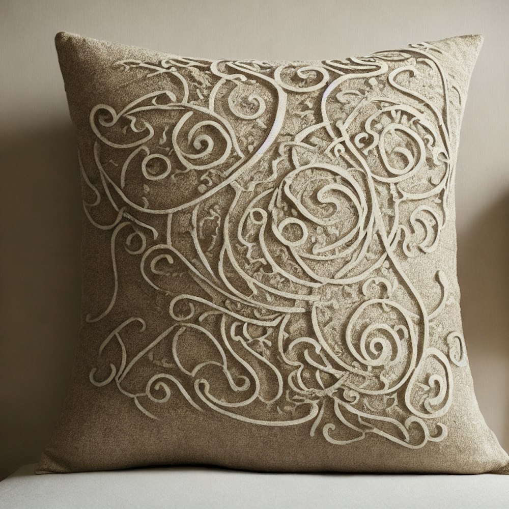 one simple pillow in a large bed, text on pillow "Granluar Echoes"