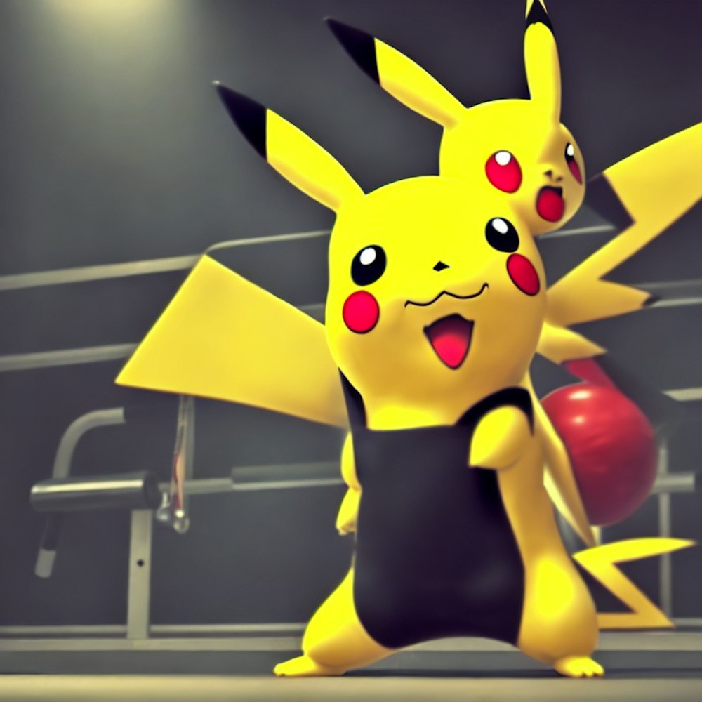 Pikachu working out at the gym